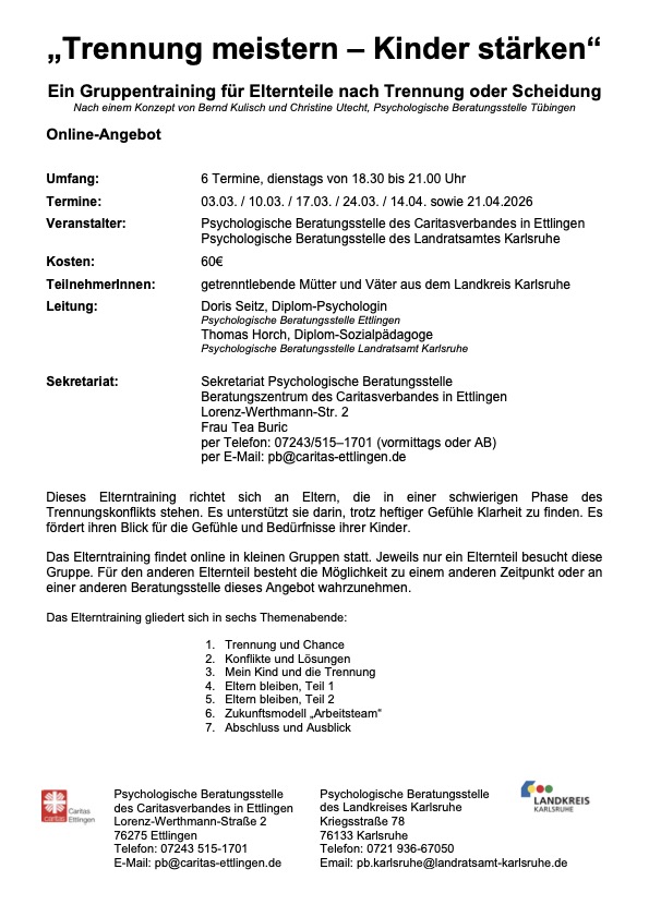 Fragen Sie nach aktuellen Angeboten des Jugendamts und der psychologischen Beratungsstellen (z.B. Caritas, Landratsamt, AWO, u.a.)