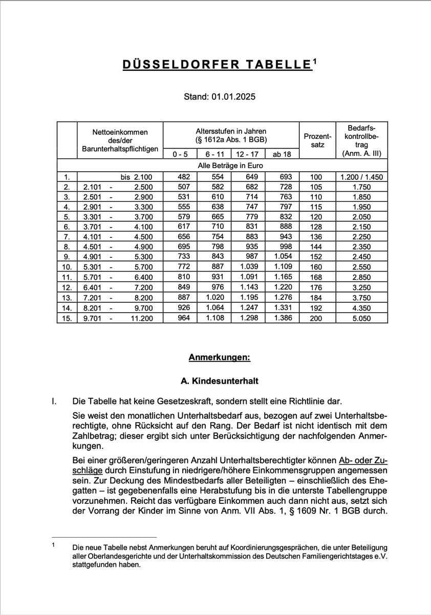 Die Düsseldorfer Tabelle 2025